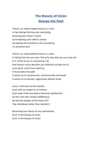 George The Poet The Beauty Of Union Words . Lesson focusing on prince harry & meghan markle's wedding, with a particular focus on writing poetry and george the poet's specially commissioned poem. His innovative brand of musical poetry has won him critical acclaim both as a recording artist and a social commentator.